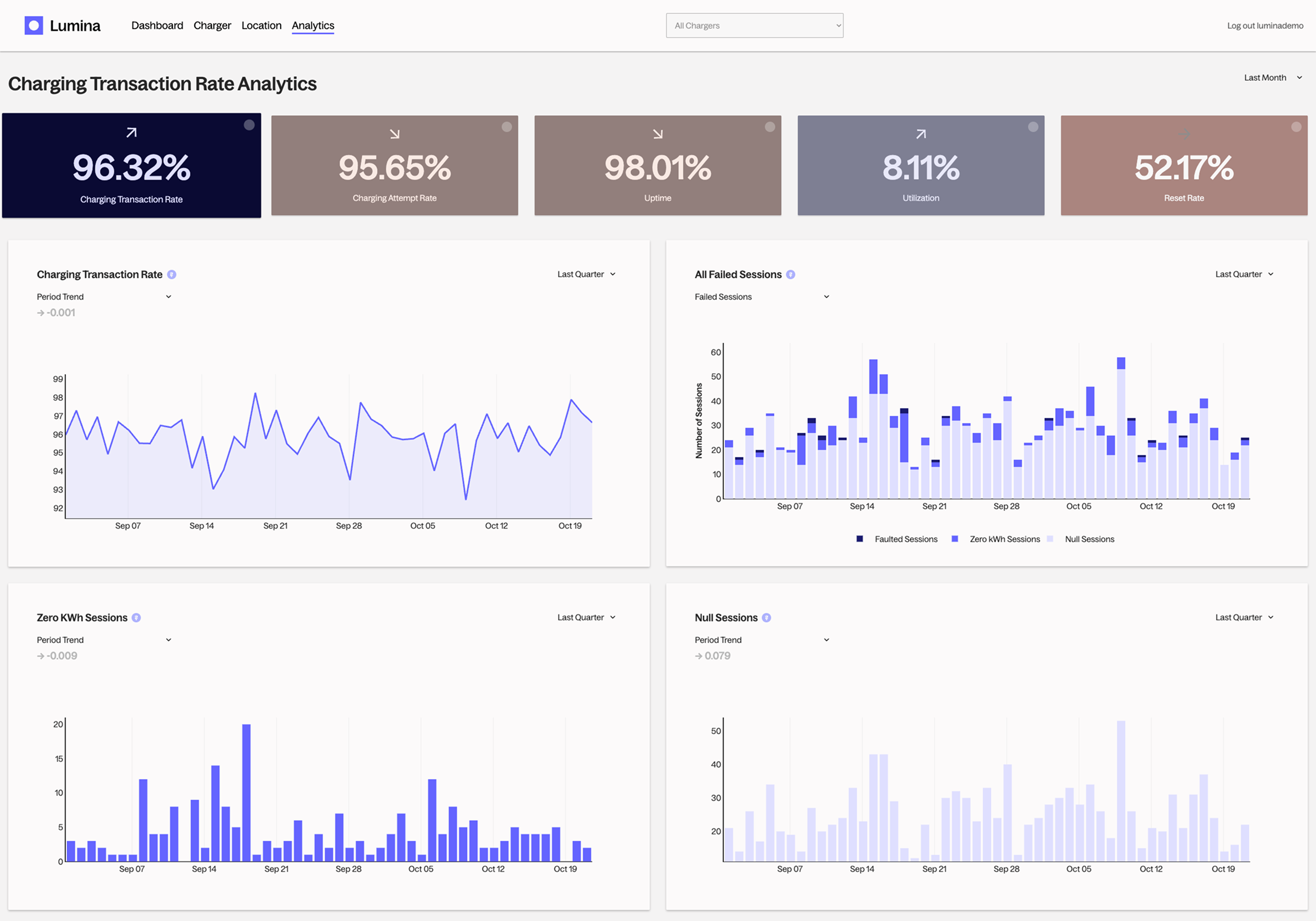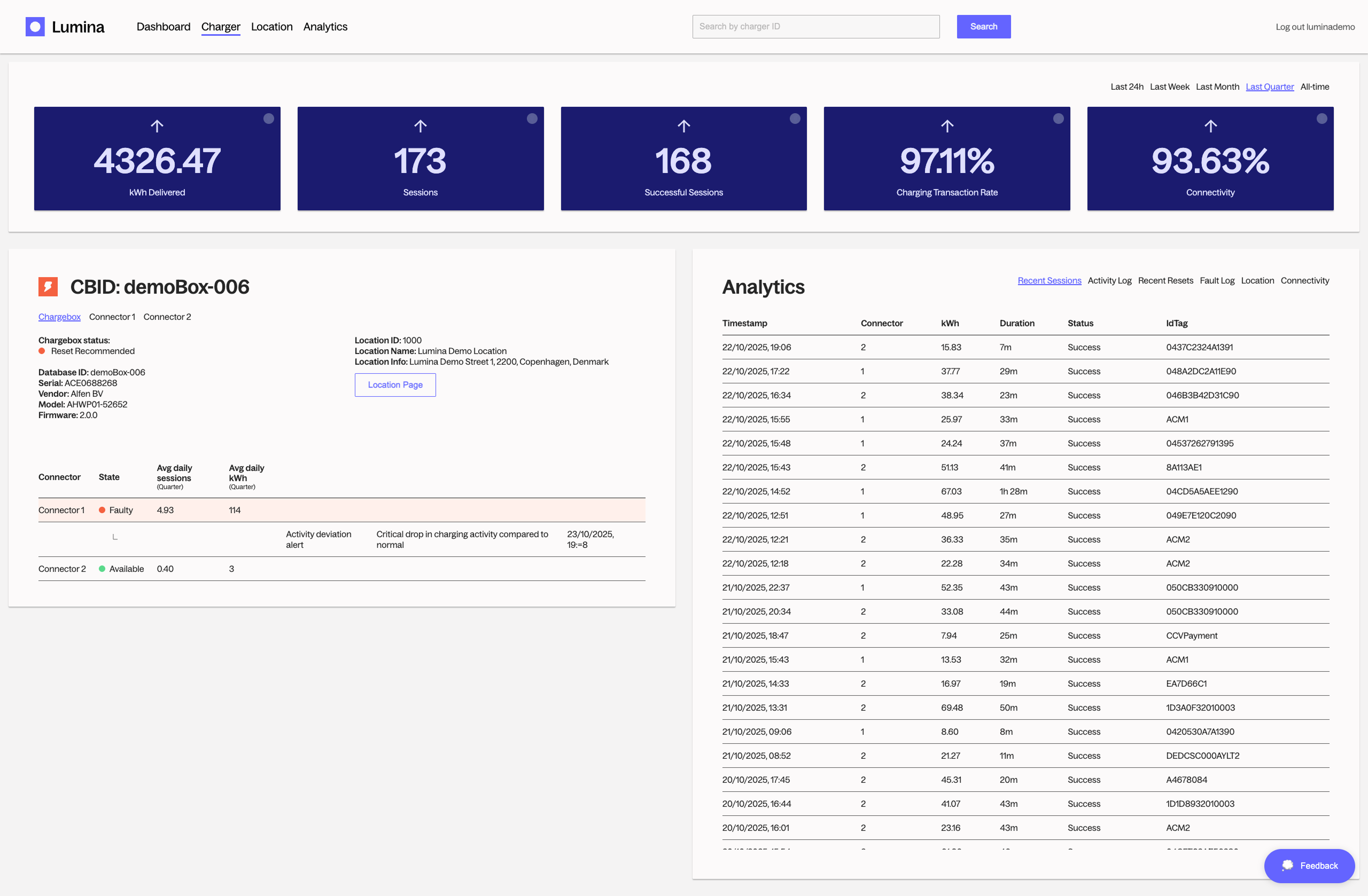 It is achieved through dynamic visualization and benchmarking of charger, configuration, site and network metrics, allowing users to identify patterns, anomalies and improvement opportunities.